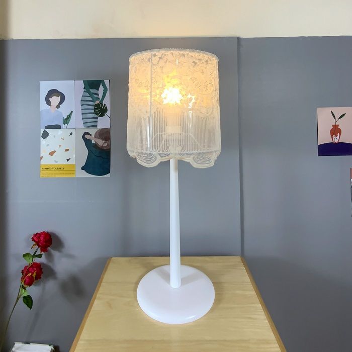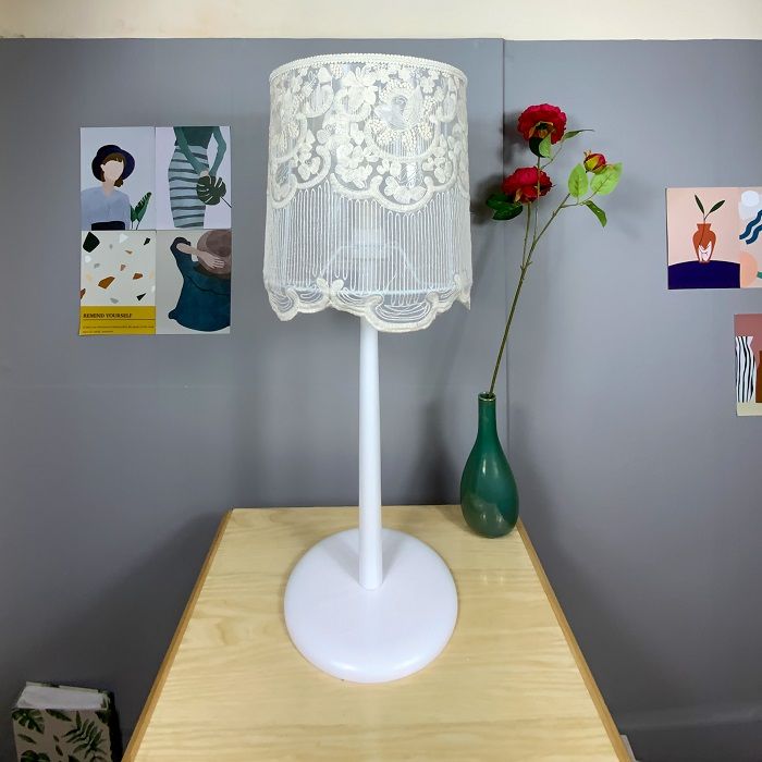 Chiếc đèn bàn gỗ hoa tuyết trắng này được làm từ chất liệu vải ren cao cấp, lấy cảm hứng từ bộ váy cưới lung linh, kết hợp với chân đế gỗ Sồi phủ sơn màu trắng