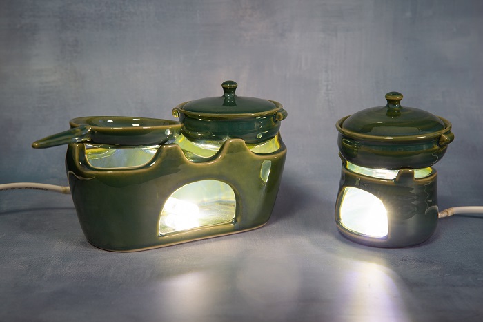 Đèn bàn gốm bếp đôi MN007 có kích thước rất nhỏ, chiều rộng 18cm, phù hợp làm đèn bàn ngủ mini, hoặc đèn trang trí bàn làm việc. Ngoài ra, sản phẩm rất thích hợp trưng bày trong các nhà hàng món ăn dân gian, các quan khách vào thưởng thức đồ ăn, lại được ngắm những chiếc bếp đang được đun nóng bởi ngọn lửa hồng ấm áp, gợi nhớ về vô vàn kỉ niệm. Nếu chiếc bếp này được làm đèn ngủ trong phòng khách sạn thì chắc hẳn sẽ là một điểm hút khách và làm tăng thêm giá trị cho căn phòng.