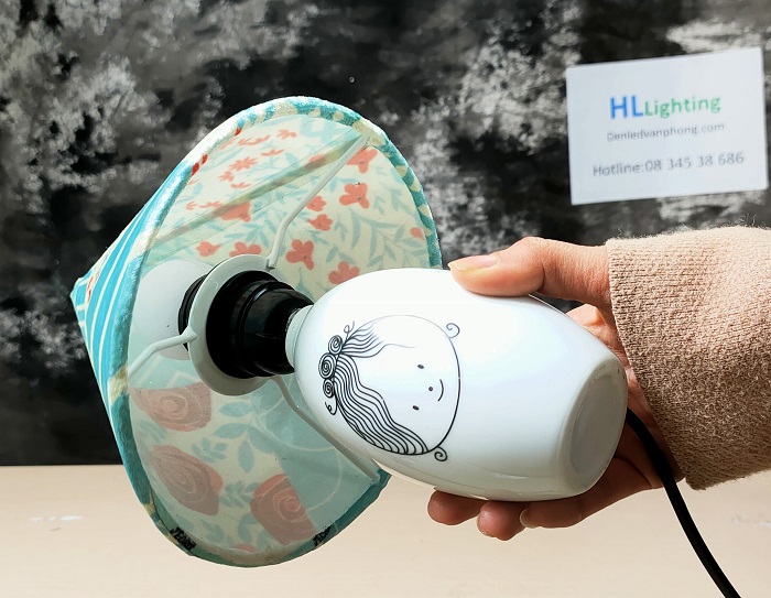 Đèn bàn ngủ hoa hồng MN004B được làm từ các chất liệu cao cấp và sang trọng. Bình gốm Bát Tràng trắng sứ vẽ hình cô gái kết hợp chao đèn vỏ Nhung nhập khẩu Pháp
