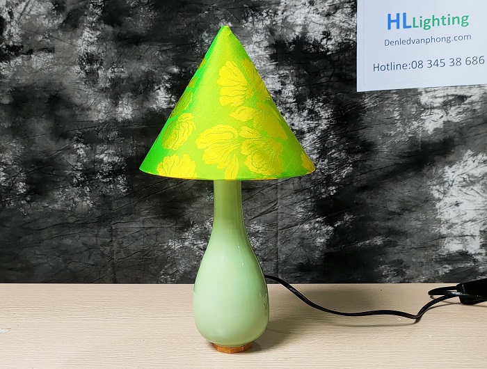 Đèn bàn ngủ nón xanh cốm MN012 là sự kết hợp của chất liệu bình gốm Bát Tràng và vải lụa Hà Đông cao cấp, đã tạo nên một sản phẩm đèn ngủ độc đáo và cuốn hút.