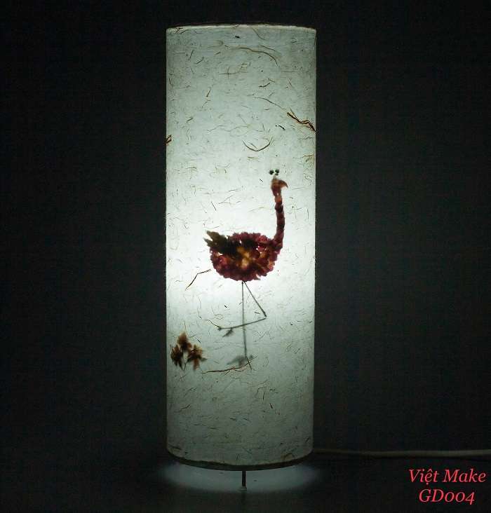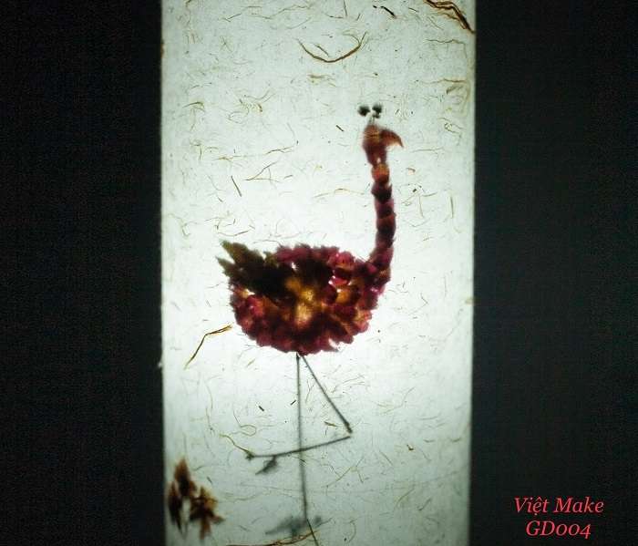 Đèn giấy dó hoa hồng hạc được tạo nên bởi những bông hoa hồng ép khô xếp trên nền giấy dó, giấy dó được đánh giá là 1 trong những loại giấy bền nhất thế giới.