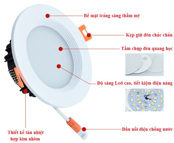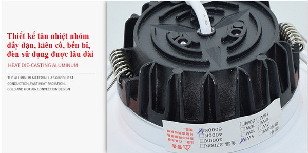 Đèn led âm trần chíp dán 5W hiện đang được sử dụng bộ tản nhiệt nhôm cho hiệu suất tản nhiệt cực nhanh, giúp tăng tuổi thọ của các sản phẩm.