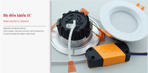 1. Đèn âm trần SMD 5W sử dụng chấn lưu điện tử:
