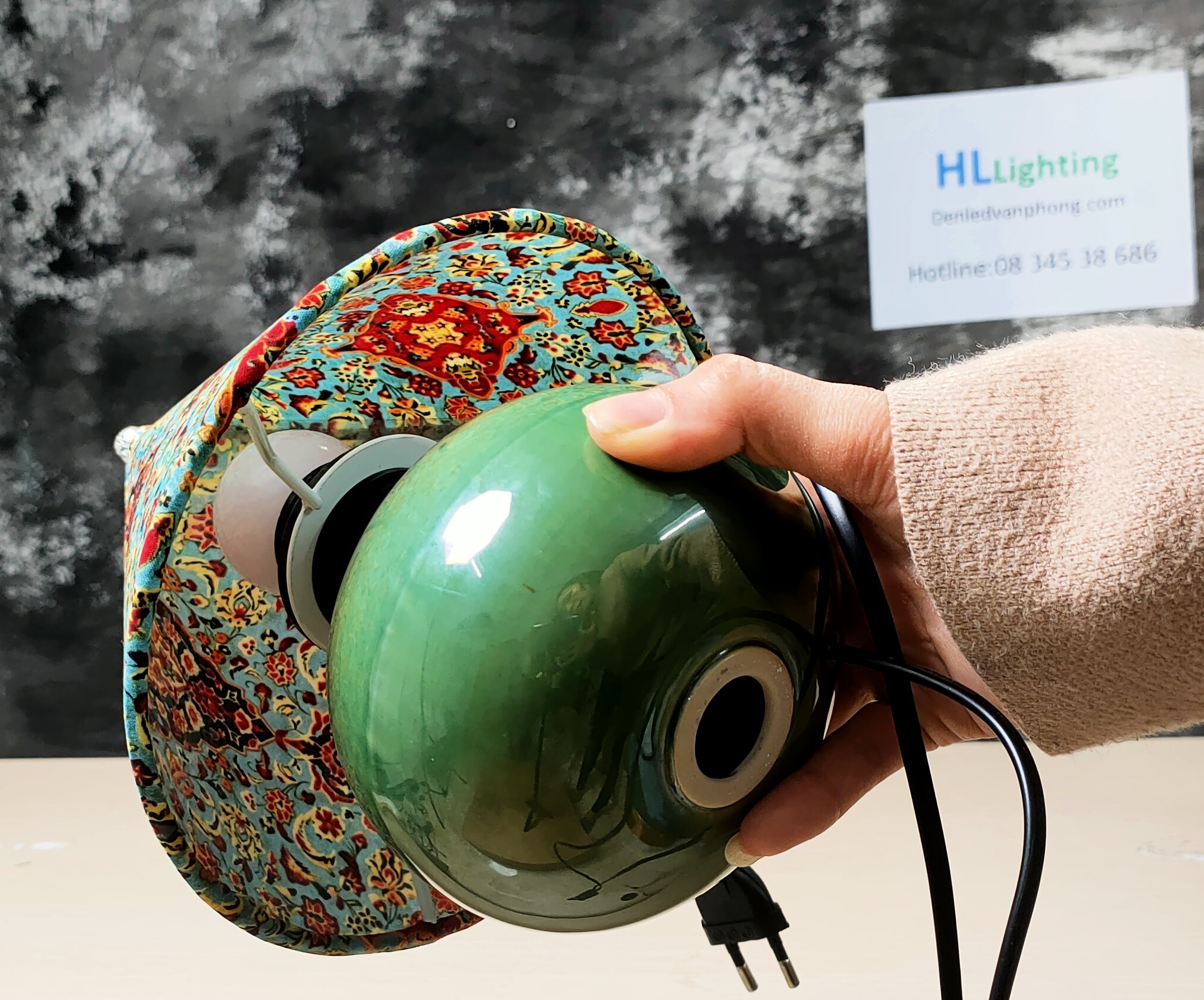 Đèn thổ cẩm Gốm Sứ Bát Tràng trang trí nội thất là sự kết hợp của chất liệu lụa thổ cẩm và bình gốm Bát Tràng, đã tạo nên một sản phẩm thuần Việt và rất độc đáo