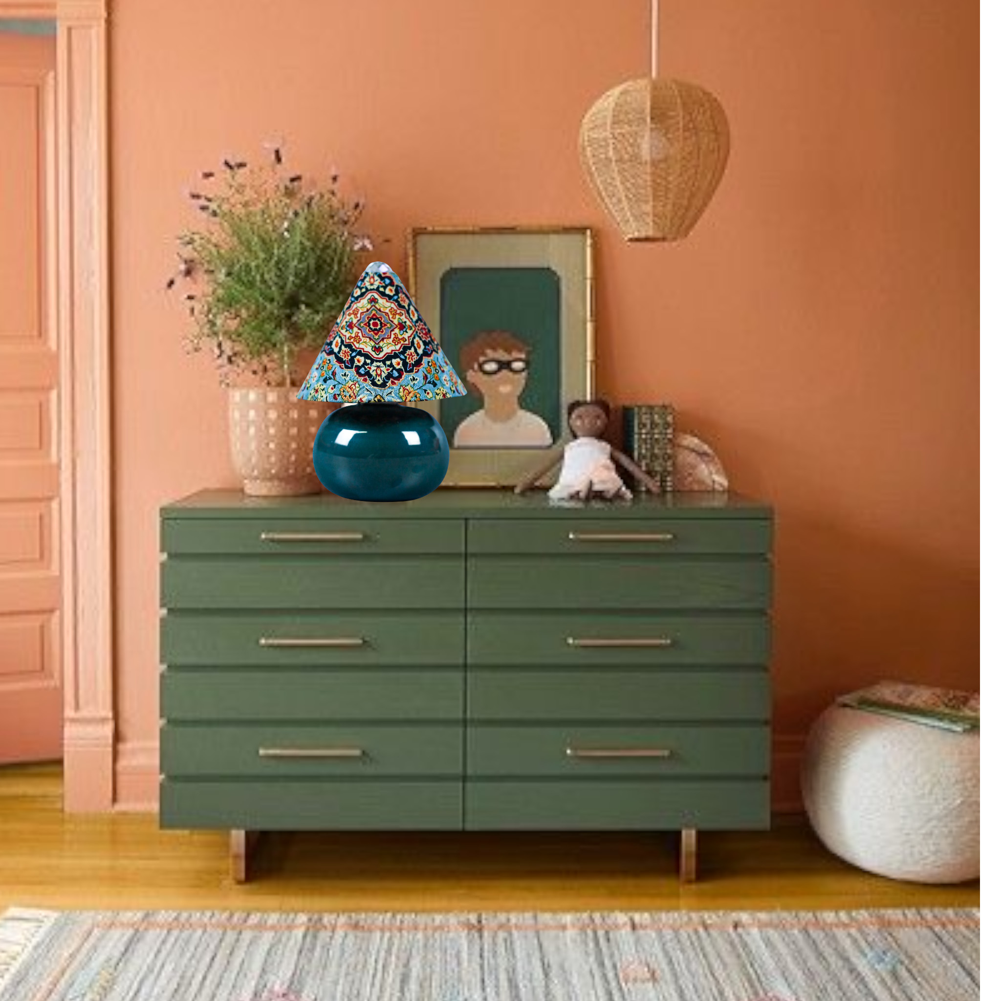 - Đèn bàn ngủ có chao đèn được làm từ lụa thổ cẩm: Ở Việt Nam, thổ cẩm được biết đến là một trong những loại vải đượt dệt thủ công với những họa tiết, hoa văn độc đáo nổi lên trên bề mặt vải như được thêu. Các hoa vặn, họa tiết trên vải thổ cẩm thường mang hơi hướng, nét truyền thống của các vùng miền, dân tộc.